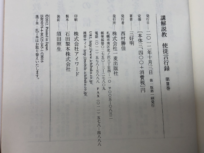 講解説教使徒言行録 第3巻 一麦出版社 三好 明