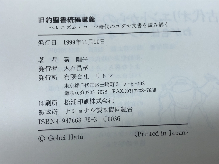 旧約聖書続編講義: ヘレニズム・ローマ時代のユダヤ文書を読み解く リトン 秦 剛平