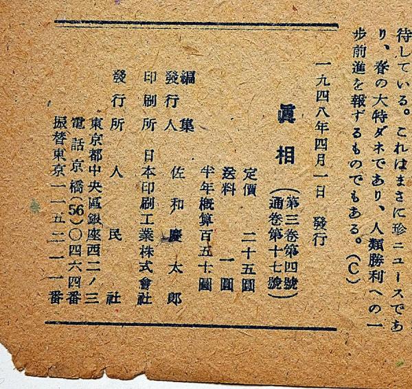 眞相 17号 昭和23年4月 浅沼稲次郎の戦犯を追求する他