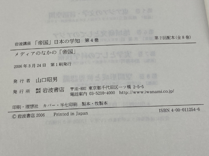 岩波講座「帝国」日本の学知 第4巻 岩波書店 山本 武利