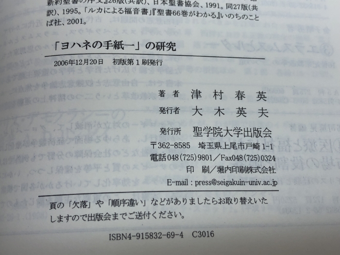 「ヨハネの手紙一」の研究: 聖書本文の帰納的研究 聖学院大学出版会 津村 春英