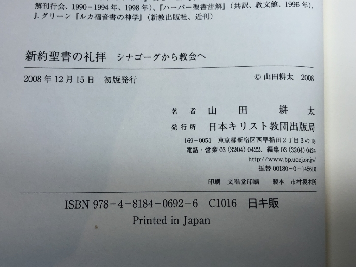 新約聖書の礼拝 日本キリスト教団出版局 山田 耕太