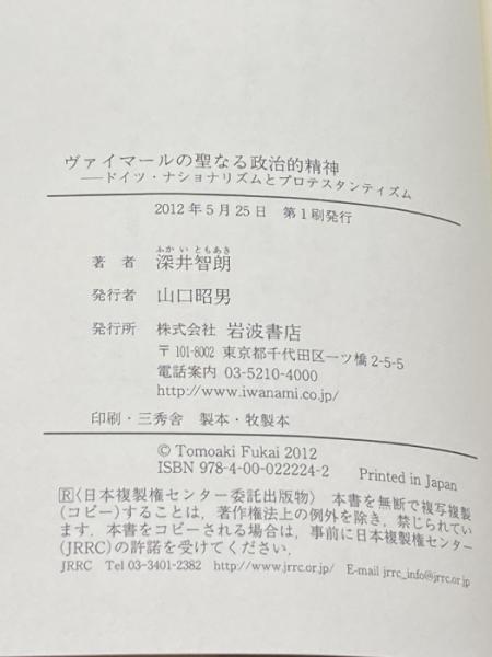 ヴァイマールの聖なる政治的精神――ドイツ・ナショナリズムとプロテスタンティズム 岩波書店 深井 智朗