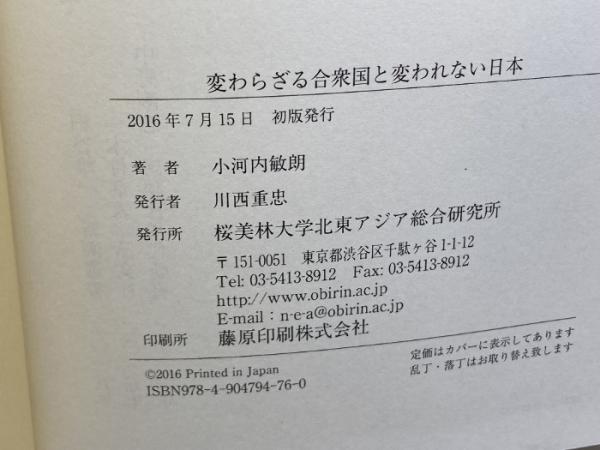 変わらざる合衆国と変われない日本 (不条理に屈する日本は輝けない) 桜美林大学北東アジア総合研究所 小河内 敏朗
