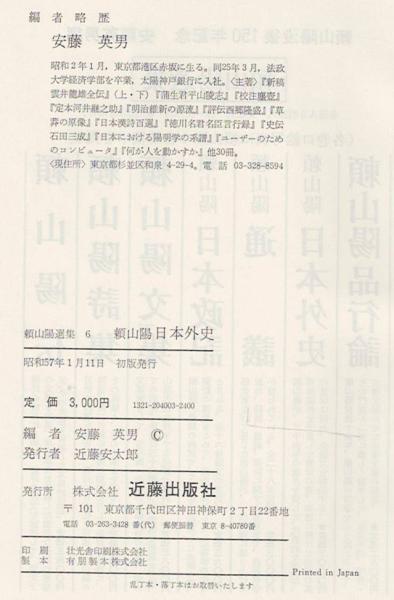 頼山陽 日本外史 <頼山陽選集 6> 初版