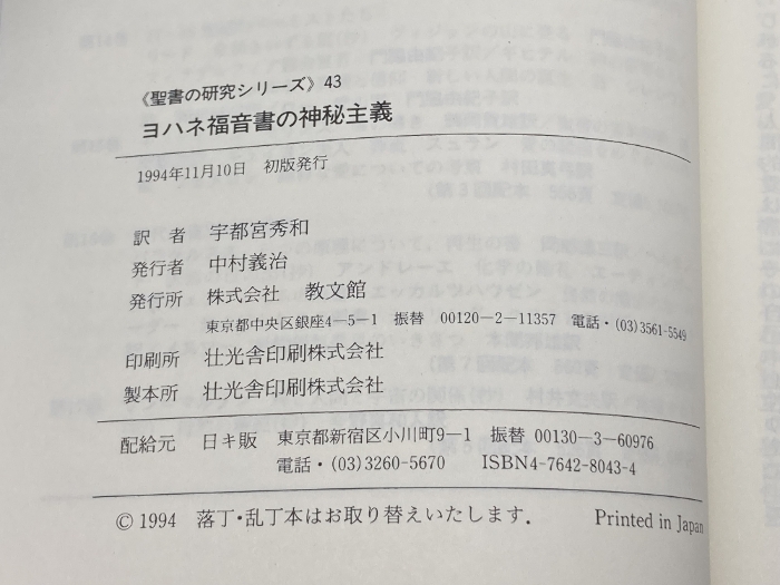 ヨハネ福音書の神秘主義 教文館 L.W. カントリーマン