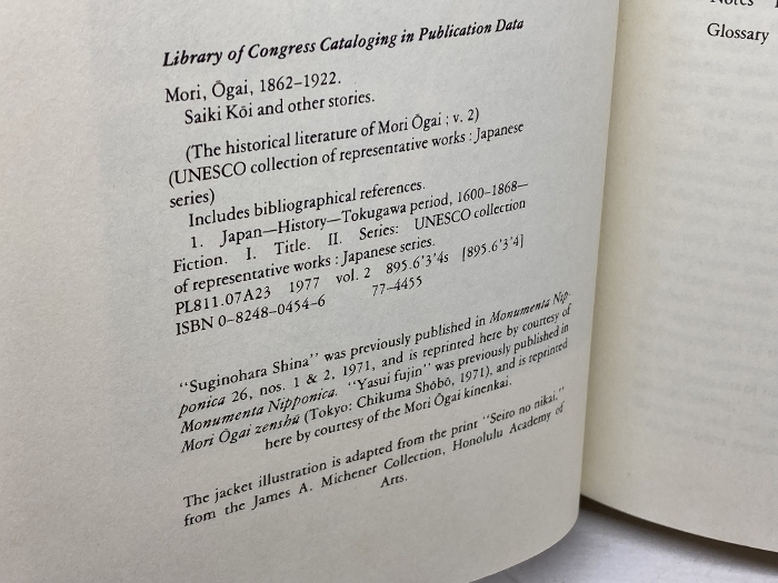 洋書 Saiki Koi and Other Stories (「細木香以」ほか短編) Univ of Hawaii Pr Ogai, Mori(森鷗外)
