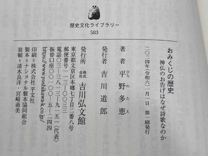 おみくじの歴史: 神仏のお告げはなぜ詩歌なのか (583) (歴史文化ライブラリー 583) 吉川弘文館 平野 多恵