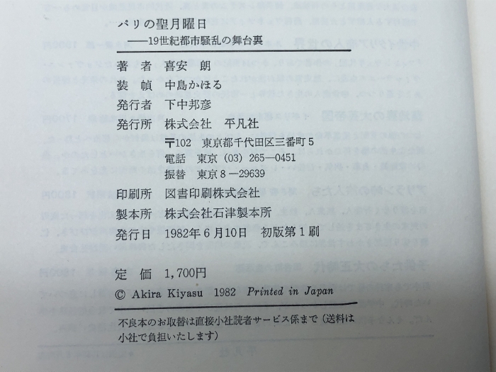 パリの聖月曜日: 19世紀都市騒乱の舞台裏 平凡社 喜安 朗