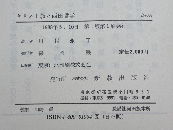 キリスト教と西田哲学 新教出版社 川村 永子