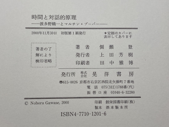 時間と対話的原理: 波多野精一とマルチン・ブーバー 晃洋書房 側瀬 登