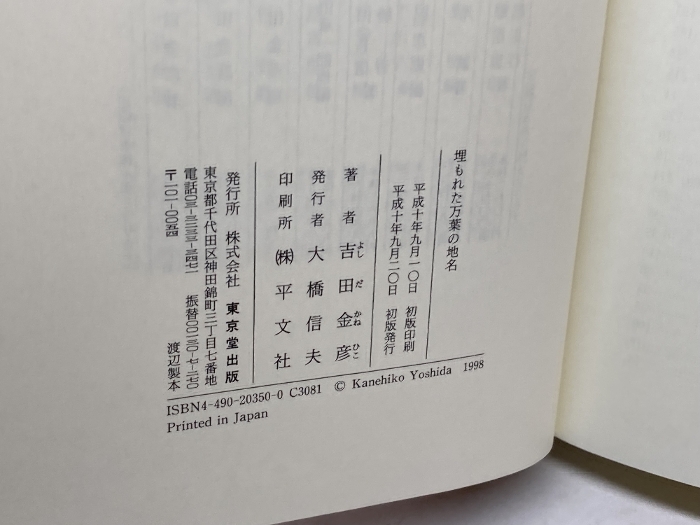 埋もれた万葉の地名 東京堂出版 吉田 金彦