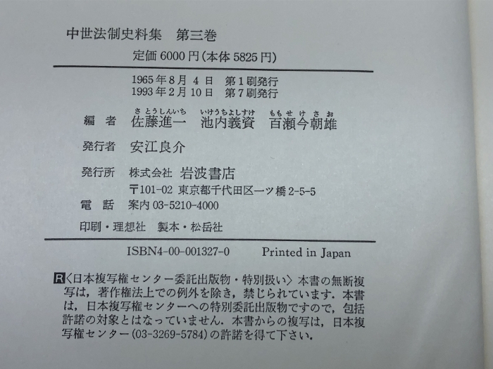 武家家法 I (中世法制史料集 3) 岩波書店 佐藤 進一