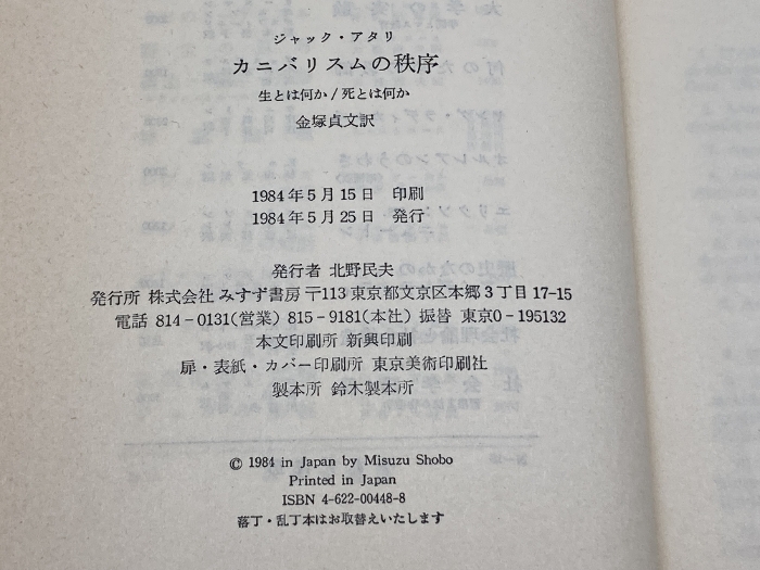 カニバリスムの秩序―生とは何か・死とは何か みすず書房 ジャック アタリ