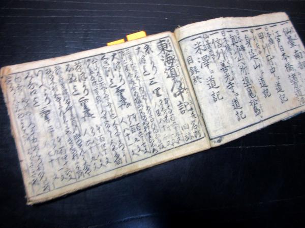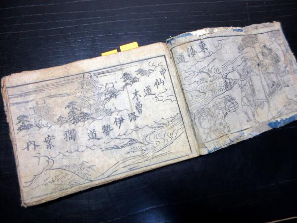• 解説 和本江戸期旅行道中記「東海道中仙道木曽路伊勢道独案内」1冊/古書古文書/木版摺りです。