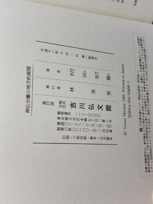 神仏分離の地方的展開 吉川弘文館 村田 安穂