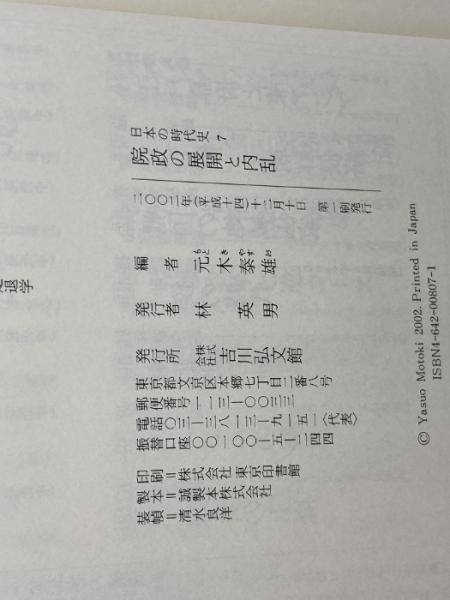 日本の時代史 (7) 院政の展開と内乱 吉川弘文館 元木 泰雄