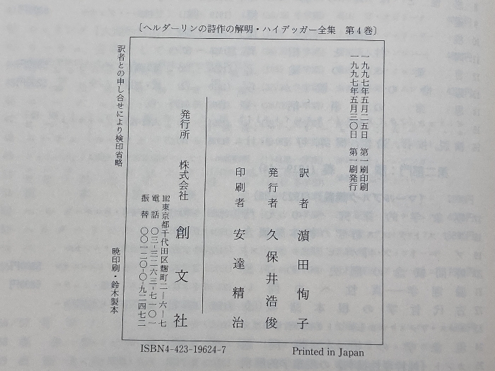 ハイデッガー全集 第4巻 創文社出版販売 ハイデッガー