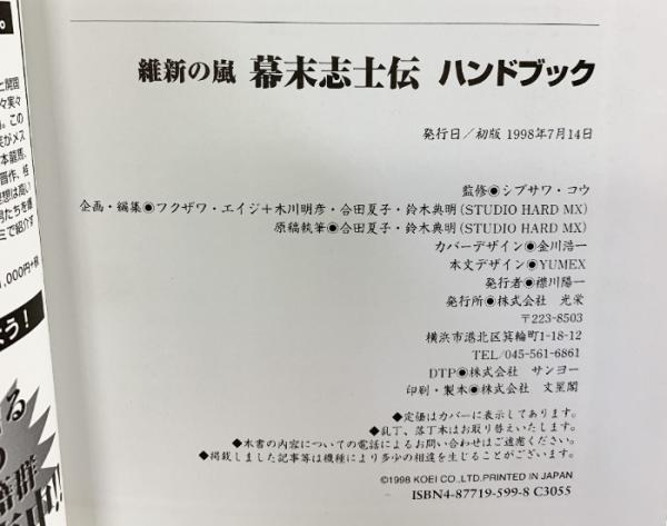 維新の嵐幕末志士伝ハンドブック: パソコン版対応 (シブサワ・コウシリーズ) コーエーテクモゲームス フクザワ エイジ