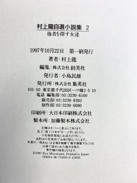 村上龍自選小説集 (2) 他者を探す女達 集英社 村上 龍