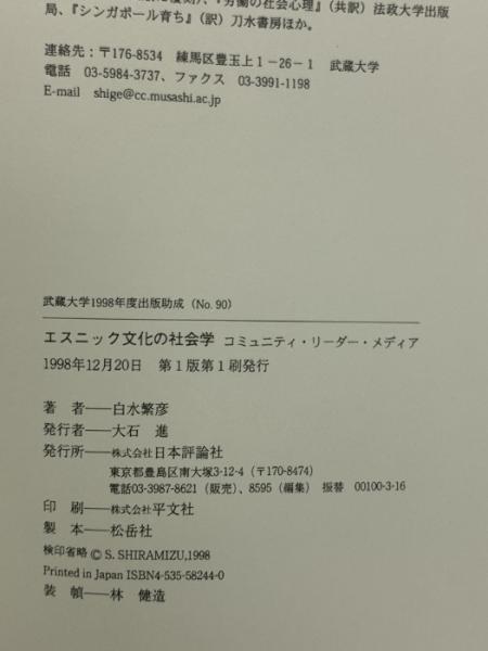 エスニック文化の社会学: コミュニティ・リーダー・メディア 日本評論社 白水 繁彦