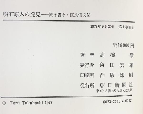 明石原人の発見―聞き書き・直良信夫伝 朝日新聞社 高橋 徹