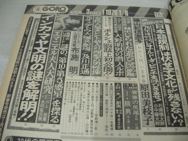 GORO NO.1 ゴロー 1976年01月08日号 山口百恵 表紙+3折ピンナップ(対面は原田美枝子) 原田美枝子・巻頭グラビア/紀信激写 エマニエル夫人 布施明 超能力開発カード付 女性人気タレント48人の私の理想の男性