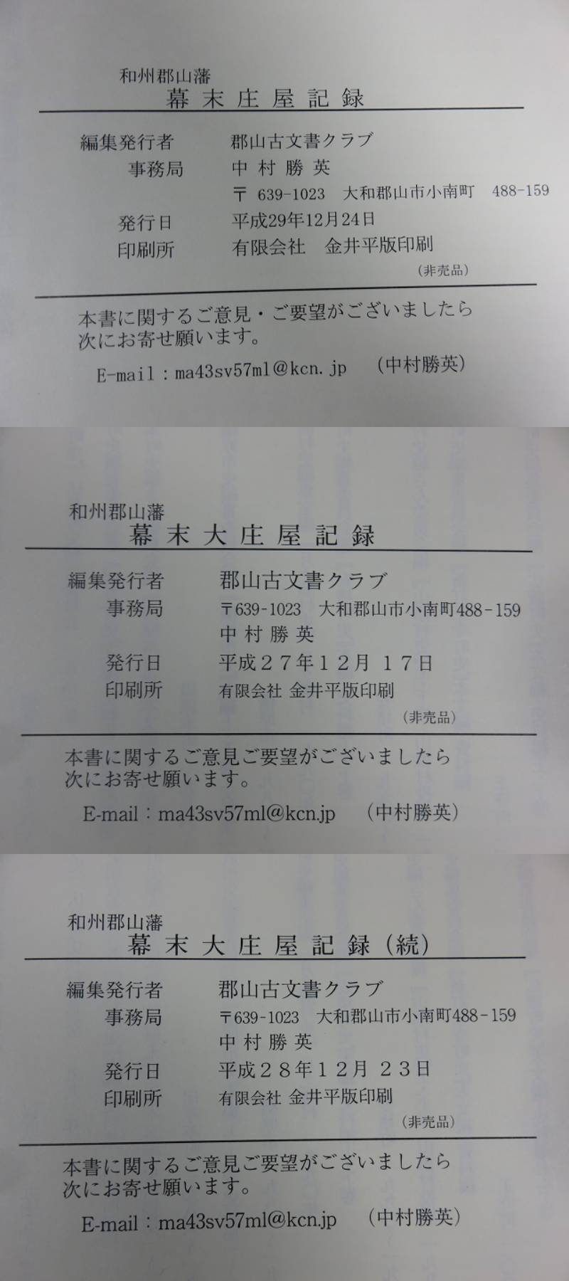 和州郡山藩 「幕末庄屋記録・幕末大庄屋記録・幕末大庄屋記録(続)」3冊