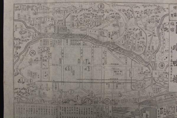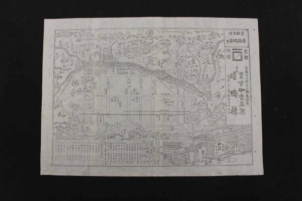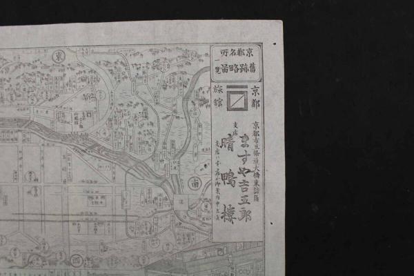 5 5 京都名所旧跡略図一覧 京都旅館 京都市五條通 大橋東詰角 ますや吉吾郎 銅板刷 約25×34.5㎝