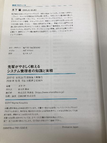 先輩がやさしく教えるシステム管理者の知識と実務 翔泳社 木下 肇
