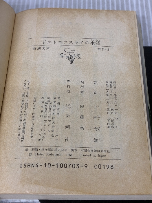 【※イタミ有り】ドストエフスキイの生活 (新潮文庫) 新潮社 秀雄, 小林