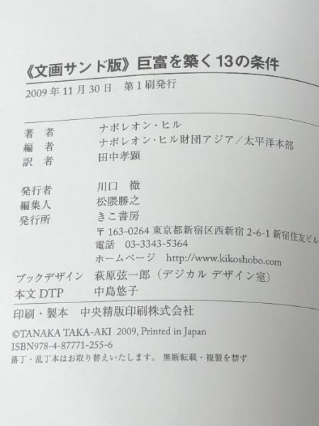 巨富を築く13の条件 文画サンド版  きこ書房 ナポレオン・ヒル