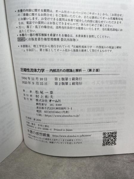 圧縮性流体力学(第2版): 内部流れの理論と解析 オーム社 松尾 一泰