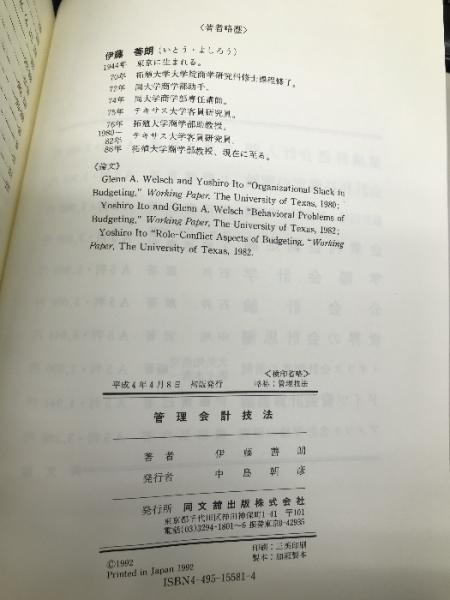 管理会計技法 同文舘出版 善朗, 伊藤