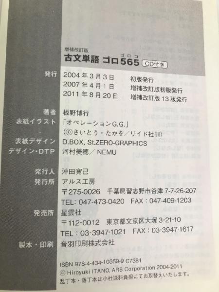 古文単語ゴロ565 増補改訂版―大学入試 ゴロで覚える with CD 【※CD欠品】アルス工房 板野 博行