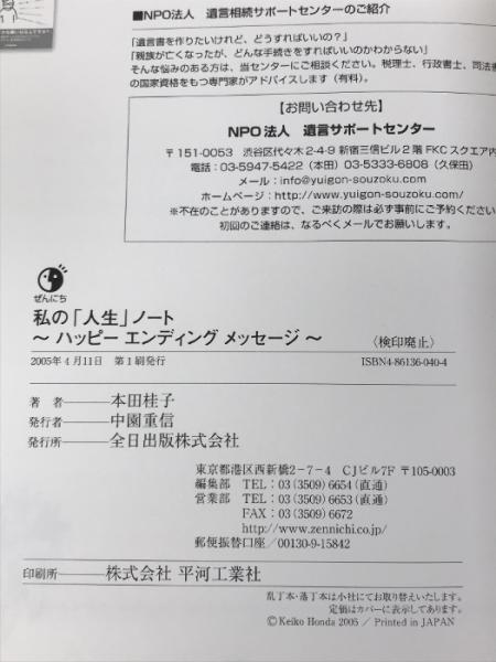 私の「人生」ノート―ハッピーエンディングメッセージ 全日出版 本田 桂子