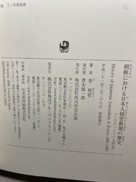 朝鮮における日本人経営新聞の歴史 (一八八一--一九四五) 角川学芸出版 李 相哲