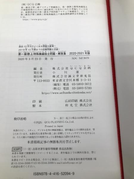 第一級陸上特殊無線技士問題・解答集 2020-2021年版: 過去10年分のよく出る問題を厳選 ! 2019年10月期までの試験問題を収録! 誠文堂新光社 QCQ企画