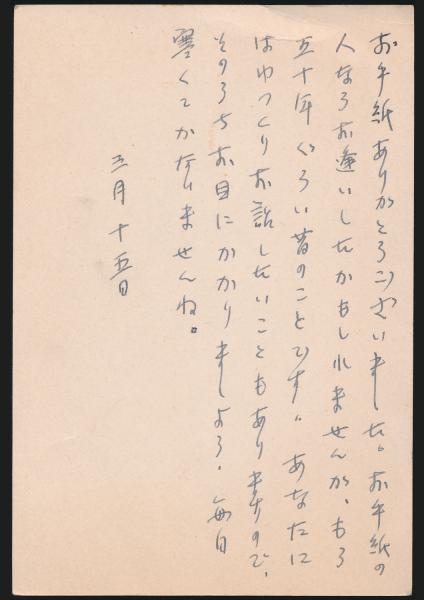 • 解説 昭和45年3月15日付、ペン書き7行、上部に少折れがございます。内容は手紙の人物の返答です。