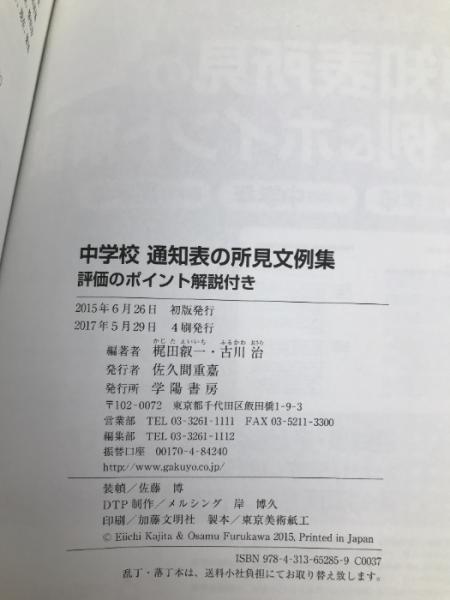 中学校 通知表の所見文例集 評価のポイント解説付き 学陽書房 梶田 叡一