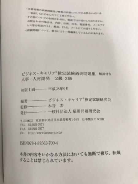 人事・人材開発 2・3級 (ビジネス・キャリア®検定試験 過去問題集(解説付き)) 雇用問題研究会 木谷 宏