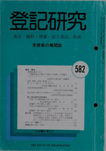 登記研究 実務家の機関誌 582号 平成8年7月号