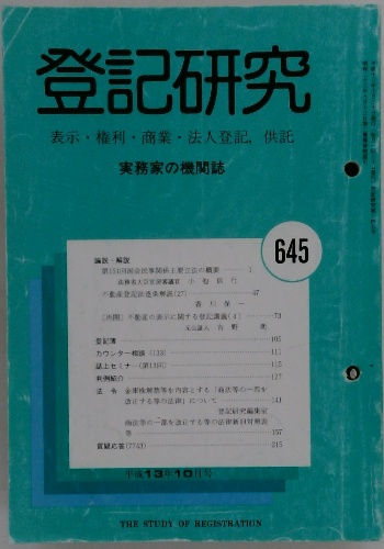 登記研究 645号 2001年10月号