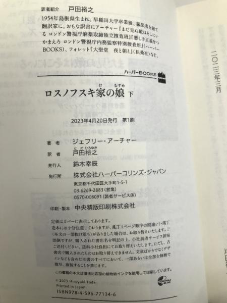 ロスノフスキ家の娘 下 (ハーパーBOOKS) ハーパーコリンズ・ジャパン ジェフリー アーチャー