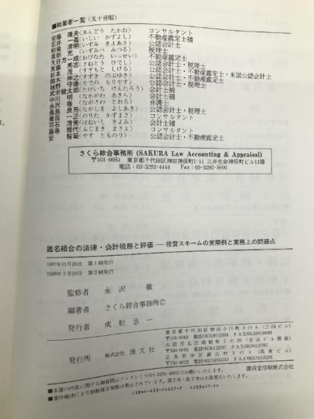 匿名組合の法律・会計税務と評価―投資スキームの実際例と実務上の問題点 清文社 さくら綜合事務所