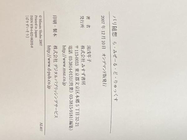 OD>パリ随想―ら・みぜーる・ど・りゅっくす みすず書房 湯浅 年子
