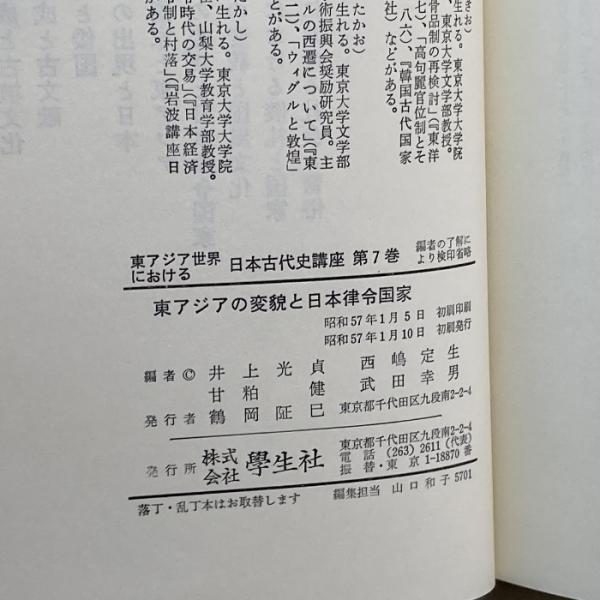 東アジア世界における日本古代史講座 第7巻 東アジアの変貌と日本律令国家 学生社 井上 光貞
