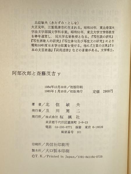 阿部次郎と斎藤茂吉 上・下巻セット 桜風社 北住敏夫
