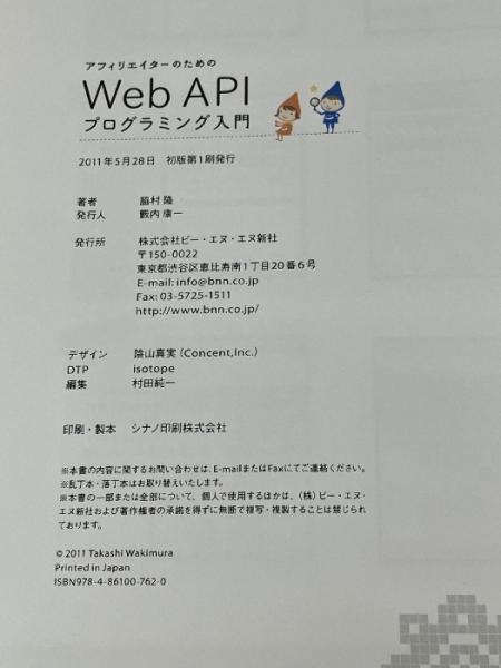 アフィリエイターのための Web APIプログラミング入門 ビー・エヌ・エヌ新社 脇村 隆