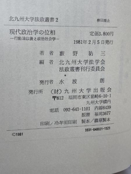 現代政治学の位相―行動論以後と政治社会学 (1981年) (北九州大学法政叢書〈2〉) 九州大学出版会 藪野 祐三